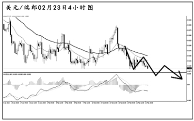 英鎊兌美元大幅下落,為歐系貨幣中表現(xiàn)最為疲弱的貨幣。4小時圖MACD進入到空頭動能充盈的階段,且匯價正在考驗1.5640的支撐。若英鎊成功跌破此支撐,則階段性的筑頂將基本宣告成功。短線對于英鎊先看反彈,待1.5640被跌破后再行入場做空為好。