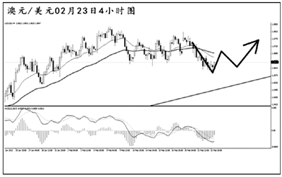 澳元兌美元高位盤整之后小幅下落,匯價向上升趨勢線支撐1.0520一線挺進。雖然澳元短線已轉(zhuǎn)為下跌趨勢,但從4小時圖上看,澳元有形成abc結(jié)構(gòu)調(diào)整的可能,若此調(diào)整成立,后市澳元仍將恢復(fù)漲勢。由于黃金近期的表現(xiàn)實在強勁,短線看空澳元需謹(jǐn)慎。