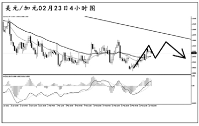 美元兌加元周初跳空低開之后持續(xù)反彈,匯價逐步向道氏高點阻力1.0050一線靠近。4小時圖匯價處于明顯的震蕩走勢之中,在道氏高點被升破之前,做多都屬于逆勢博弈的機會。預(yù)計后市匯價有望沖擊下降壓力線1.0080附近阻力,只有升破方可結(jié)束階段性的下跌趨勢。