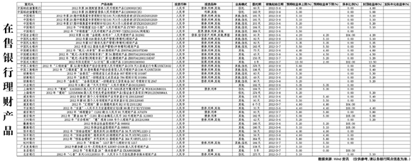 在售銀行理財(cái)產(chǎn)品[2012-02-24]