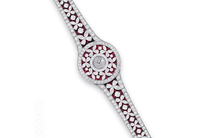 機芯:石英機芯 ▼ 功能:時、分顯示 ▼ 寶石:逾230顆鉆石及70顆紅寶石