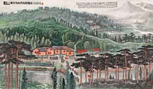 自上世紀(jì)50年代開始,隨著中國政治、社會各方面涌現(xiàn)出一種對革命圣地的崇拜熱情,與革命歷史相關(guān)的韶山、井岡山、延安等地,地位不斷提升。1960年傅抱石的《毛澤東同志故居》《韶山八景》參加在北京舉辦的全國美術(shù)展,最早將對革命圣地的描繪脫離寫生層面,進(jìn)入主題性創(chuàng)作,“革命圣地山水題材”就此開始形成,這種新的山水畫類型在上個世紀(jì)60年代中期得到空前發(fā)展,成為與“毛澤東詩意山水”并行的兩大國畫題材。在此類型作品中,“韶山”是畫家描繪最多的,幾乎當(dāng)時所有山水畫家都曾涉足。
