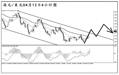 澳元兌美元強(qiáng)力上沖,重新挑戰(zhàn)4小時圖的下降通道上沿,此通道走勢已經(jīng)延續(xù)了近一個半月的時間,若上行突破,后市有望展開一波明顯的上調(diào)。但由于日線圖并沒有到達(dá)明顯的強(qiáng)支撐位,目前尚不能預(yù)測澳元的跌勢已完結(jié),需著重關(guān)注通道的突破進(jìn)程。