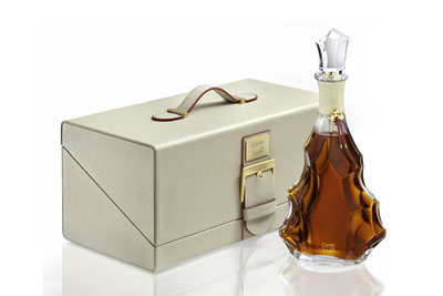 Mansau設(shè)計的Baccarat水晶酒瓶盛裝,以皮革蕾絲封瓶,包覆24K的金箔,搭配手工義大利皮制展示盒,限量發(fā)行950瓶。