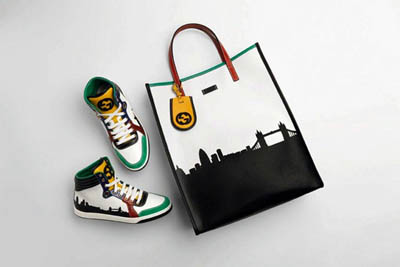 無論是鞋款還是包包均選用了上等皮革制造,設(shè)計師特別以倫敦的黎明天際線為圖案,加上對比度強烈的橘黃、嫩綠、棗紅和靛藍配件,五種取自奧運五環(huán)的色彩組成了最新的顏色混搭。同時推出的還有一款Gucci