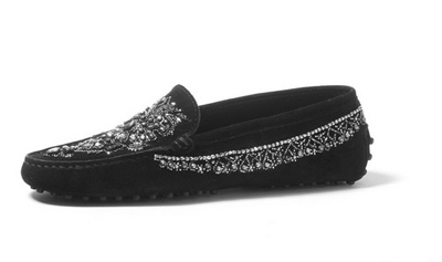 2012春夏,TOD’S將其著名的Gommino豆豆鞋用多種柔軟的天然皮革重新打造,并配以奢華的細(xì)節(jié)設(shè)計(jì),如絲綢刺繡、亮片、金質(zhì)或銀質(zhì)飾釘,或是呈現(xiàn)特殊蟒皮效果的珠串。