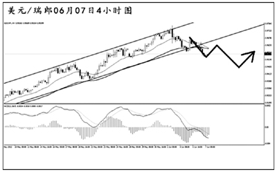 美元兌瑞郎的高位下行也跌破了通道下沿和均線系統(tǒng)的雙重支撐,4小時(shí)圖的MACD顯示空頭動(dòng)能充盈,匯價(jià)即將挑戰(zhàn)道氏低點(diǎn)支撐0.9530,能否跌破成為后市繼續(xù)下跌的關(guān)鍵。小時(shí)圖顯示最近的強(qiáng)動(dòng)能交替節(jié)奏頻繁,但整體的下行趨勢(shì)保持完好,預(yù)計(jì)匯價(jià)小幅上調(diào)之后將繼續(xù)以回落走勢(shì)為主。