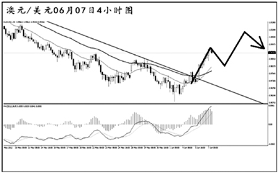 澳元兌美元小幅刺破了日線圖前方低點(diǎn)支撐0.9660之后持續(xù)反彈,力度強(qiáng)勁,此前持續(xù)的MACD底背離信號(hào)發(fā)揮了作用,且匯價(jià)已經(jīng)將下降趨勢(shì)線和4小時(shí)圖的道氏高點(diǎn)阻力0.9895升破,階段性的下跌告一段落。短線澳元的上漲斜率陡峭,匯價(jià)將首先挑戰(zhàn)日線圖55均線的壓制位1.0095。