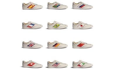 Collection”,以奧運足球賽的12個入圍國家為主題,包括了中國、日本、瑞士、英國、德國、意大利、法國、美國等多個國家,鞋款則選擇了復(fù)古的式樣,只在白色鞋身添加源自國旗的裝飾元素,設(shè)計簡約卻又旗幟鮮明,如果想要到場為心愛的國家加油,此款鞋子也是必備行裝。