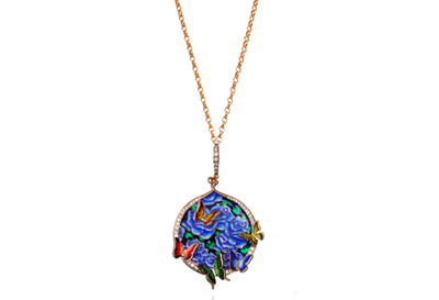 琺瑯彩寶飾品,精致絢麗。工藝繁復(fù)考究,融合深奧的文化內(nèi)涵,使其不局限于珠寶的范疇,更添永久傳承的意義。