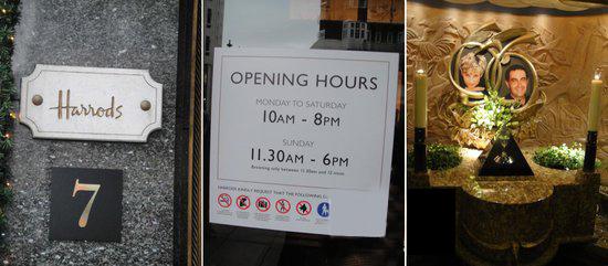 牛津街逛完,第二天還有時間,還有個地方可以一去,就是Knightsbridge附近的Harrods購物中心(哈洛德百貨)。Harrods購物中心占地4.5英畝,是世界最大的百貨公司之一(與紐約梅西百貨打平),也是目前英國境內最大的百貨公司。Harrods購物中心擁有多項英國皇家認證,許多英國皇室家族成員都是這家購物中心的重要顧客。在Harrods一樓,可以看到已故戴安娜王妃和Dodi