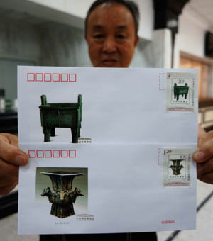 為迎接7月9日中國國家博物館建館100周年紀念日,中國郵政正式發(fā)行“國家博物館”票中票特種郵票一套2枚,名為:館藏文物—尊、館藏文物—鼎;面值分別為:1.20元、3元。
