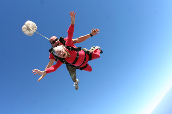 斯萊特住在緬因州?巳亍.?shù)貢r間15日下午,他在緬因州皮茨菲爾德機場上空跳傘。跳傘時,他由跳傘教練馬特·里恩多陪同,從升至3000米空中的飛機上跳下。在一名引導員的指引下,兩人緩緩降落,順利完成這次雙人跳傘。