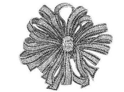 Couture系列中鉆石胸針以18K白金做主基調(diào),鑲嵌一顆橢圓形切割重2.5克拉主鉆,周圍配以1404顆總重6克拉白鉆及1553顆總重7克拉黑鉆。