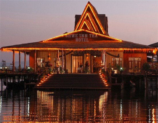 這座緬甸目前唯一的水上度假村建于1996年,坐落在平靜的茵萊湖上。度假村由茅草屋頂別墅組成,還建有游泳池。游客可以到不遠(yuǎn)處Heya Ywama