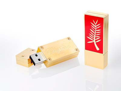 瑞士腕表及珠寶制造商Chopard(蕭邦)的這款奢華U盤以黃金打制,表面拋光,邊緣作圓角處理。正面是大紅底漆的戛納電影節(jié)金棕櫚標志,背面是蕭邦品牌標志。 這款U盤在近期舉行的戛納電影節(jié)上被送給VIP賓客,用以展示內(nèi)存的蕭邦“紅地毯”系列珠寶。黃金U盤的設計者為Pascal Grenacher,將專供蕭邦的VIP顧客。