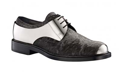 Louis Vuitton(路易威登)近年在女裝方面屢作大膽嘗試,但男裝方面還是被認為態(tài)度保守——先看看最新推出的2012秋冬男裝皮鞋,或者你會對Louis Vuitton的男裝設(shè)計師有所改觀。 鞋款帶著流暢而優(yōu)雅的流線型鞋身,鞋跟、綁帶和鞋頭處裝飾著澄亮的金色金屬,配上順滑的皮革和木紋隱約可見的鞋底,手工方面毫無瑕疵,宛如藝術(shù)品一樣令人一見傾心。如若覺得皮革版不夠大膽,還可以嘗試一下皮毛版本,相信會為你的Party之夜增添一份狂野。