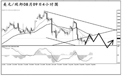 美元兌瑞郎將日線圖的上升趨勢(shì)線小幅跌破,短線新形成一個(gè)下降通道,目前匯價(jià)在對(duì)趨勢(shì)線發(fā)起回探。能否重新升破此趨勢(shì)線對(duì)于后市的走勢(shì)十分關(guān)鍵。從中線上看,匯價(jià)的漲勢(shì)尚沒有發(fā)生任何改變,預(yù)計(jì)匯價(jià)將首先向小通道下沿0.9595一帶發(fā)起一波沖擊,此后仍將以逐步反彈為主。
