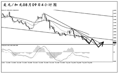 美元兌加元一路下行創(chuàng)新低,已經(jīng)將日線圖形成的大旗形通道下沿強(qiáng)力跌破。雖然短線持續(xù)發(fā)生MACD的底背離信號(hào),但由于包含背離點(diǎn)的下降趨勢(shì)線遲遲未能升破,美元兌加元仍然延續(xù)著完好的跌勢(shì)。目前匯價(jià)的下跌斜率有所加大,首先關(guān)注0.9960-1.0000一線的阻力,只要不升破此位置仍將保持下行的主基調(diào)。