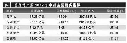 Wind資訊統(tǒng)計(jì)數(shù)據(jù)顯示,截至2012年8月25日,滬深兩市已有101家房地產(chǎn)上市公司公布了半年報(bào),總體來(lái)看,上半年房企銷(xiāo)售普遍飄紅,但利潤(rùn)增幅明顯落后于銷(xiāo)售增幅“招保萬(wàn)金”四大行業(yè)巨頭上半年?duì)I業(yè)收入總額超過(guò)674億元,相比去年的484億元大幅增長(zhǎng)近40%;但凈利潤(rùn)只比去年同期增長(zhǎng)不足2億元,為79.59億元。
