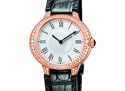 Regina)將流暢的造型與精美細(xì)致的輪廓相融合,堪稱跨越時(shí)間之典藏之作:整體造型以時(shí)尚橢圓包含圓形表盤,新意頓生,突顯現(xiàn)代風(fēng)范。表盤外圈以18K玫瑰金搭配頂級鉆石,雙曲線設(shè)計(jì),以流動(dòng)感十足的漸變線條環(huán)繞夢幻計(jì)時(shí),大氣之中不乏巧思,令其成為眾人矚目的焦點(diǎn)。表盤外圈采用雪花鑲嵌的獨(dú)特技法,每顆美鉆均獨(dú)一無二,經(jīng)工匠們的巧手,如點(diǎn)點(diǎn)繁星,溫柔墜落于表盤之上,匯聚成宛若銀河般流動(dòng)曲線,盤繞腕間,環(huán)聚中心表盤,賦予整體設(shè)計(jì)無限浪漫詩意。簡約指針在其上徐徐轉(zhuǎn)動(dòng),更增添典雅迷人的華貴風(fēng)情。更配以鱷魚皮表帶,令腕表散發(fā)出典雅尊貴的奢華氣息。