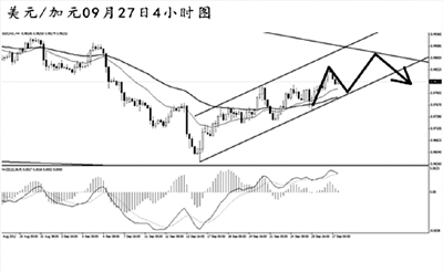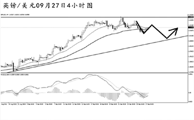 英鎊兌美元小幅創(chuàng)出日線圖新高之后急速下挫,目前在對此前的上漲進行調(diào)整。4小時圖的均線系統(tǒng)和道氏低點支撐雙雙被刺破,預(yù)示著英鎊仍有進一步的下跌空間。而MACD已經(jīng)擺脫了空頭動能充盈的階段,后市英鎊小幅沖高之后仍將以小幅下調(diào)的節(jié)奏運行。