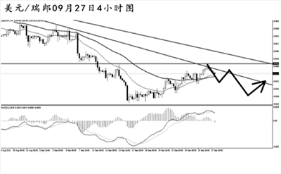 美元兌瑞郎上行挑戰(zhàn)日線圖此前被跌破的道氏低點0.9420一線的阻力,此位置同時也是4小時圖道氏高點的阻力區(qū)域,匯價在此位置遇阻下落。如果美元兌瑞郎不突破0.9420,此波上漲很有可能成為此前下跌的次級趨勢調(diào)整,后市匯價仍有繼續(xù)走低的風(fēng)險。繼續(xù)關(guān)注此阻力區(qū)域的突破進程來決定短線的操作方向。