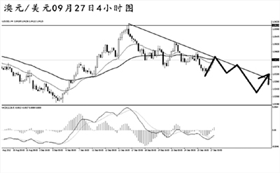 澳元兌美元此前小幅創(chuàng)出日線圖新高之后下行回落,短線沿下降趨勢線逐步下調(diào)。從小時圖上看,最近澳元經(jīng)常走出強動能交替節(jié)奏,雖然整體的跌勢沒有遭到破壞,但這種波動顯示出市場人氣的動蕩。預(yù)計后市澳元仍將保持這種走勢,首先關(guān)注壓力線的阻力作用。