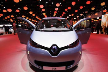 巴黎國(guó)際車展上展出的雷諾新型電動(dòng)車ZOE。 |