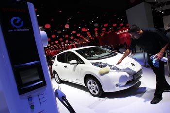 巴黎國(guó)際車展上展出的尼桑電動(dòng)車。 |