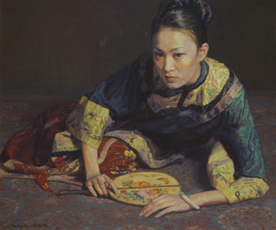 中國書畫專拍場將推出吳冠中、林風眠、張大千、陳逸飛、常玉等著名畫家的數幅珍品,最受矚目的當屬陳逸飛的油畫作品《斜臥的持扇美人》,畫上有畫家本人的中英文簽名,估價500-700萬港元。