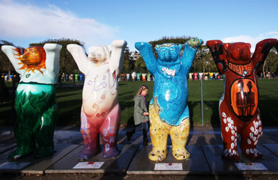 為紀念巴黎和柏林締結(jié)友好城市25周年,140座“聯(lián)合巴迪熊”12日亮相巴黎埃菲爾鐵塔下的戰(zhàn)神廣場。色彩繽紛的“巴迪熊”,高2米,手牽手排成兩行矗立于戰(zhàn)神廣場。每只“巴迪熊”都代表一個聯(lián)合國承認的國家,并由每個國家的藝術(shù)家為自己的國家進行設(shè)計制作。從2002年起,“聯(lián)合巴迪熊”已經(jīng)在全球25個城市舉行了巡展,其中包括中國香港,并在巡展所到的每一個城市舉行相關(guān)的募捐和拍賣活動。目前已為聯(lián)合國兒童基金及當(dāng)?shù)貎和Wo組織籌得捐款190萬歐元。
