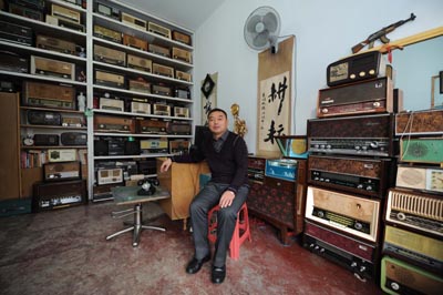 在蘇利國不起眼的小屋里,架子上、地上擺放著他17年間收藏的各式收音機(jī)近300臺,其中大多是國產(chǎn)機(jī)。他說:“不同時期的國產(chǎn)收音機(jī)有特定的外形和技術(shù)特點(diǎn),從他們身上能看出那個時候我國的國情!
