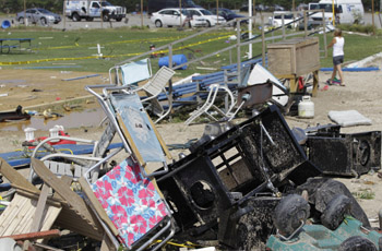 2012年9月8日,一場(chǎng)龍卷風(fēng)當(dāng)天襲擊了紐約市沿海地區(qū),在美國(guó)紐約皇后區(qū)的一個(gè)沖浪俱樂(lè)部,受災(zāi)地區(qū)一片狼藉。新華社/美聯(lián) |