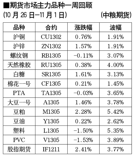 期貨市場(chǎng)主力品種一周回顧[10月26日-11月1日]