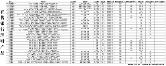在售銀行理財產(chǎn)品[2012-11-16]