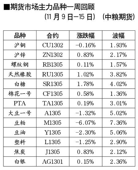 期貨市場(chǎng)主力品種一周回顧[11月9日-15日]