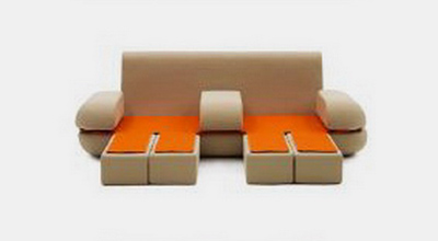 life沙發(fā)很能勾起初見者的食欲——造型上仿佛一個巨大的漢堡包,里面夾著一片芝士。與普通漢堡不同的是,上方的“面包片”是由七個獨立單元構(gòu)成的,平時安穩(wěn)地坐在上面固然不錯,想要躺臥一下的時候,只要對這七個單元進行簡單地操作,就能讓Dynamic