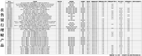 在售銀行理財(cái)產(chǎn)品[2012-11-16]