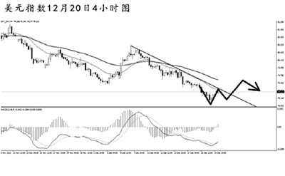 美元指數(shù)將日線圖前方低點(diǎn)79.55跌破之后發(fā)力下行,短線價(jià)格受制于下降趨勢線的阻力,下落的主趨勢保持完好。從空間上看,美元指數(shù)仍具備繼續(xù)走弱的條件。但短線價(jià)格發(fā)起了一定力度的上沖,若美元指數(shù)升破79.50,預(yù)計(jì)將展開一波較為明顯的上調(diào)。目前繼續(xù)做多非美貨幣需要謹(jǐn)慎。