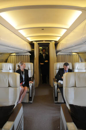 “作為企業(yè)家,商務(wù)行程繁忙,擁有自己的公務(wù)機作為交通工具可以按照自己的意愿安排行程,非常方便。其實在國內(nèi)的公務(wù)出行我基本上不會使用公務(wù)機,只有在出國且日程緊張的情況下才會坐自己的公務(wù)機!敝袊茽柦】导瘓F董事局主席翟家華已擁有兩架龐巴迪公務(wù)機。他告訴《經(jīng)濟參考報》記者,目前,“善爾”號公務(wù)機一年約有400-500飛行小時,而飛行小時數(shù)超過300就說明使用公務(wù)機達(dá)到比較高效務(wù)實的階段。“我坐公務(wù)機的時間只占飛行小時數(shù)的1/3到1/4。有一次,我周五坐公務(wù)機到韓國濟州島辦事,白天結(jié)束工作,晚上就可以坐公務(wù)機飛到菲律賓,然后找酒店休息,周六接著工作,在菲律賓忙完周日我就可以坐公務(wù)機回國了,因為周日北京還有重要客戶要會談。但如果坐正常的航班可能要多耗上一兩天!钡约胰A講述了一次他極為緊張的商務(wù)行程安排。