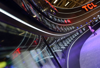 2012年柏林消費電子展上,一名參觀者在TCL集團的展臺參觀。記者 馬寧