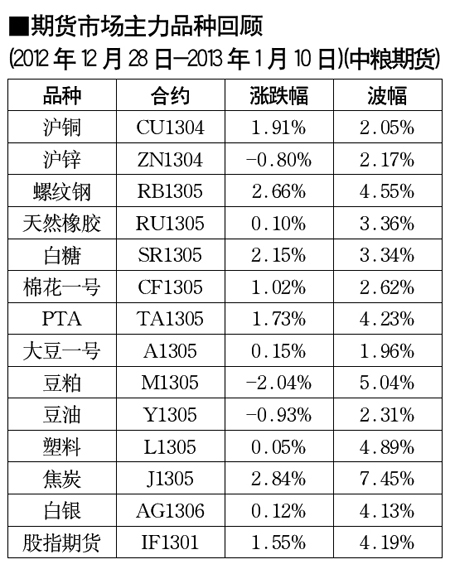 期貨市場主力品種回顧[2012.12.28-2013.1.10]