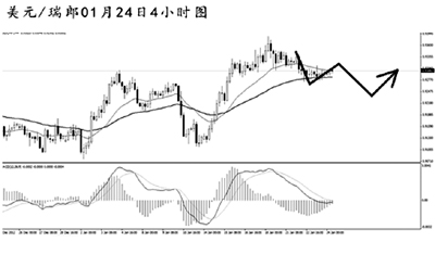 美元兌瑞郎的反彈遭遇挑戰(zhàn),短線(xiàn)匯價(jià)小幅回落,但整體的跌勢(shì)并不強(qiáng)勁。由于匯價(jià)已經(jīng)升破了日線(xiàn)圖均線(xiàn)系統(tǒng)的壓制,后市仍有進(jìn)一步上沖的動(dòng)力。小時(shí)圖上美元兌瑞郎的主趨勢(shì)雖然向下,但由于跌幅有限,且均線(xiàn)系統(tǒng)被反復(fù)穿越,只要后市重新爆發(fā)出多頭動(dòng)能,即可對(duì)其恢復(fù)看漲。