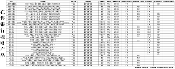 在售銀行理財(cái)產(chǎn)品[2013-02-01]