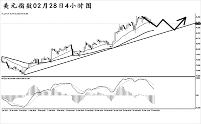 目前美元指數(shù)突破81.40的高點(diǎn)阻力,上方空間被進(jìn)一步打開。4小時圖均線系統(tǒng)多頭排列,上漲斜率陡峭。由于價格與趨勢線距離較遠(yuǎn),美元指數(shù)面臨一定的下調(diào)風(fēng)險(xiǎn)。小時圖MACD頂背離信號發(fā)揮了效果,美元指數(shù)小幅回落。下方重要的支撐在道氏低點(diǎn)81.00一線,只要美元指數(shù)不跌破此位置,后市仍有繼續(xù)上沖的動力。