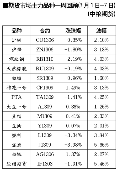 期貨市場主力品種一周回顧[3月1日-7日]