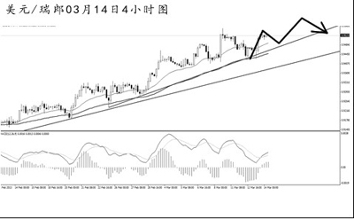 美元兌瑞郎圍繞日線圖阻力0.9510反復(fù)調(diào)整,最近一周匯價發(fā)起了兩波較強力度的下調(diào),但由于漲勢并未遭到破壞,最終匯價還是選擇繼續(xù)上行創(chuàng)新高。4小時圖均線系統(tǒng)依托匯價,道氏低點的支撐在0.9405,從目前的上沖勢頭來看,只要匯價不發(fā)起連續(xù)的大力度下挫,后市仍將延續(xù)走高的節(jié)奏。