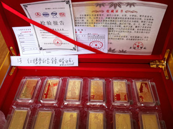 今年2月,當王安帶著她收藏的黃金紀念幣到甘肅省金銀貴金屬珠寶玉石飾品質量監(jiān)督檢驗站做鑒定時,才發(fā)現(xiàn)自己收藏的這些打著由“中國金幣總公司”、“上海造幣廠”等發(fā)行的“神九紀念金幣”、“2013年蛇年金條”等只是一堆廢銅爛鐵,“根本就不含金,先后被騙了10萬多元”。隨后她向蘭州市公安局刑警支隊報案。