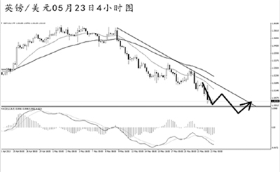 歐元兌美元調(diào)整之后再度強(qiáng)力下行,下方的強(qiáng)支撐在前方低點(diǎn)1.2745。4小時(shí)圖上看,歐元正處于第五浪下跌之中,均線系統(tǒng)回歸空頭排列的狀態(tài)。短線雖然有下跌動能明顯減弱的信號,但預(yù)計(jì)歐元將保持弱勢,若順利跌破1.2745,歐元將繼續(xù)向1.2650一線發(fā)起沖擊。